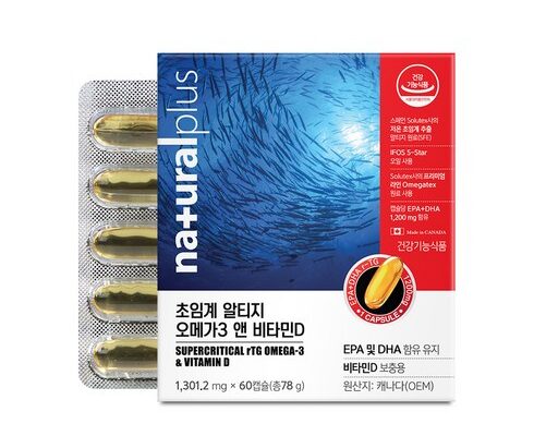 – 내츄럴플러스 알티지 오메가3는 한 캡슐에 1200mg의 오메가3를 함유하고 있어 건강한 심혈관 기능을 도와줍니다.