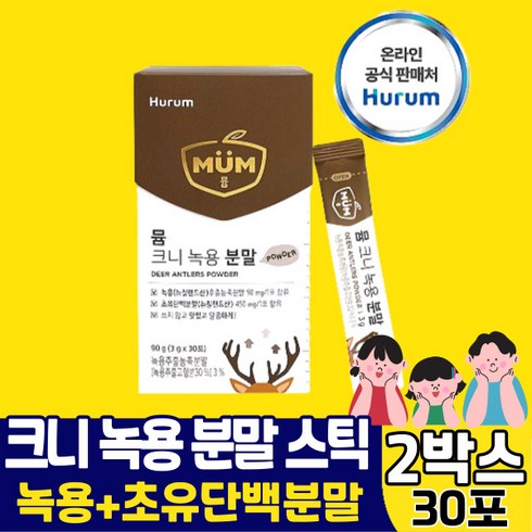 MUM 뮴 크니 녹용 분말 가루 30포 1일 1포 무공해 청정자연 뉴질랜드산 녹용 추출농축 분말 초유담백분말 성장 IGF 면역 IgG 마누카 허니 파우더 자일리톨 무수결정 포도당, 30포 X 2박스(2개월분), 2개