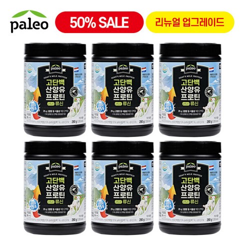 (기간세일)[6통/업그레이드]팔레오 고단백 산양유 프로틴 plus 류신(280g*6통)+보틀1개+스푼1개, 280g, 6개