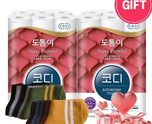 코디 화장지 도톰이 3겹 30M+ 양말 10컬레 사은품 증정, 2개, 30롤