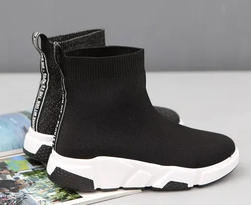 힐슈빌 여성용 4.5cm 키높이 레터링 삭스 스니커즈 밴딩 부츠 편안한 운동화 수아
