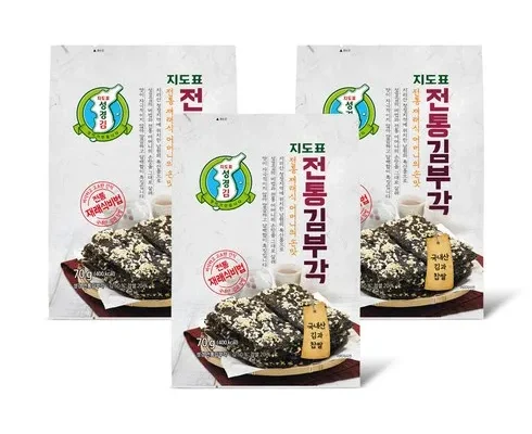 [성경김본사] 지도표 성경 찹쌀 전통 김부각 70g 3봉, 3개