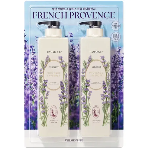 벨먼 까마르그 솔트 스크럽 바디클렌저 700g x 2개 | 프랑스 명품 소금 바디워시 라벤더 아로마오일 | Veilment Carmargue Scrub Body Cleanser