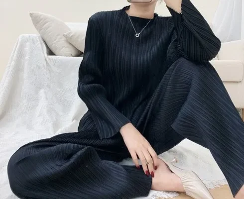 플리츠 투피스세트 셋업 이세이 여성상하세트 프리사이즈 6677