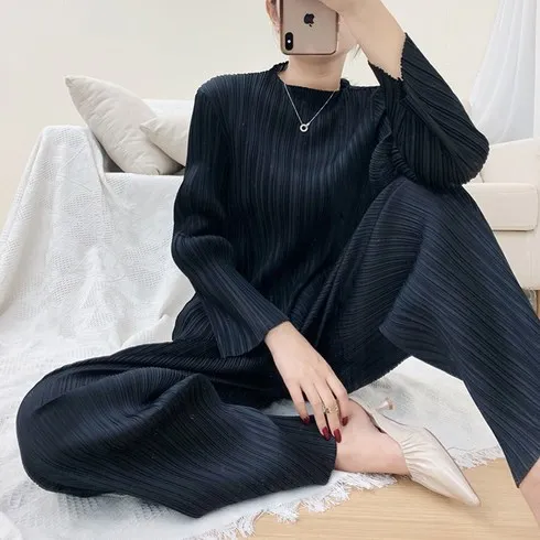 플리츠 투피스세트 셋업 이세이 여성상하세트 프리사이즈 6677