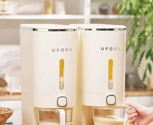 UFORU 원터치 쌀통 밀폐 방습 10kg, 크림 화이트