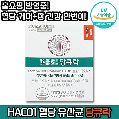 [ 식후 혈당 상승 억제도움 ] 유한양행 와이즈바이옴 당큐락 마이크로바이옴 프로바이오틱스 HAC01 유산균 락토바실러스 플란타럼 플란타룸 혈당케어 식약처 혈당 기능성 인정 제품, 1개, 30정