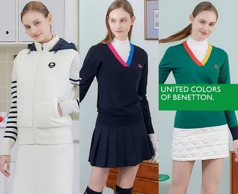 [베네통골프] 23FW 여성 하이브리드 패딩 베스트 1종 + 터틀넥 니트 1종