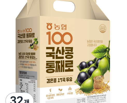 농협 100 국산콩 통째로 검은콩 17곡 두유, 32개, 190ml