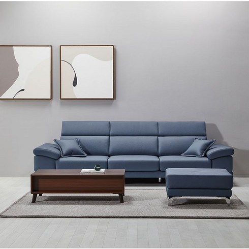 에넥스 에넥스 슈렁큰 통가죽 소파 4인소파+스툴+테이블+쿠션 2개, 오션블루