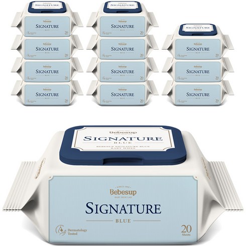 시그니처 블루 유아물티슈 캡형, 20매, 12팩