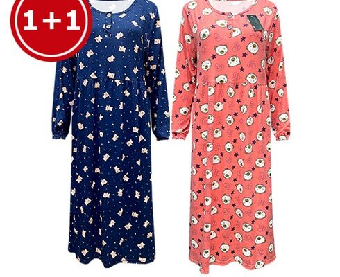 잭오브캠브릿지 루즈핏 여성용 사계절 부드러운 임산부 실내복 이지웨어 홈웨어 파자마 잠옷 빅사이즈 편한 수면 원피스 2세트